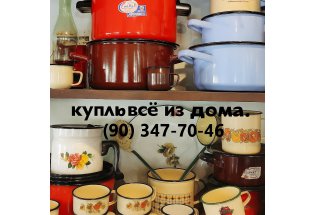 Кухонную утварь: казаны,кастрюли- большие и маленькие, эмалированные и алюминиевые, мясорубки, сковородки, тазы- ведра,ложки- поварешки и прочее.
